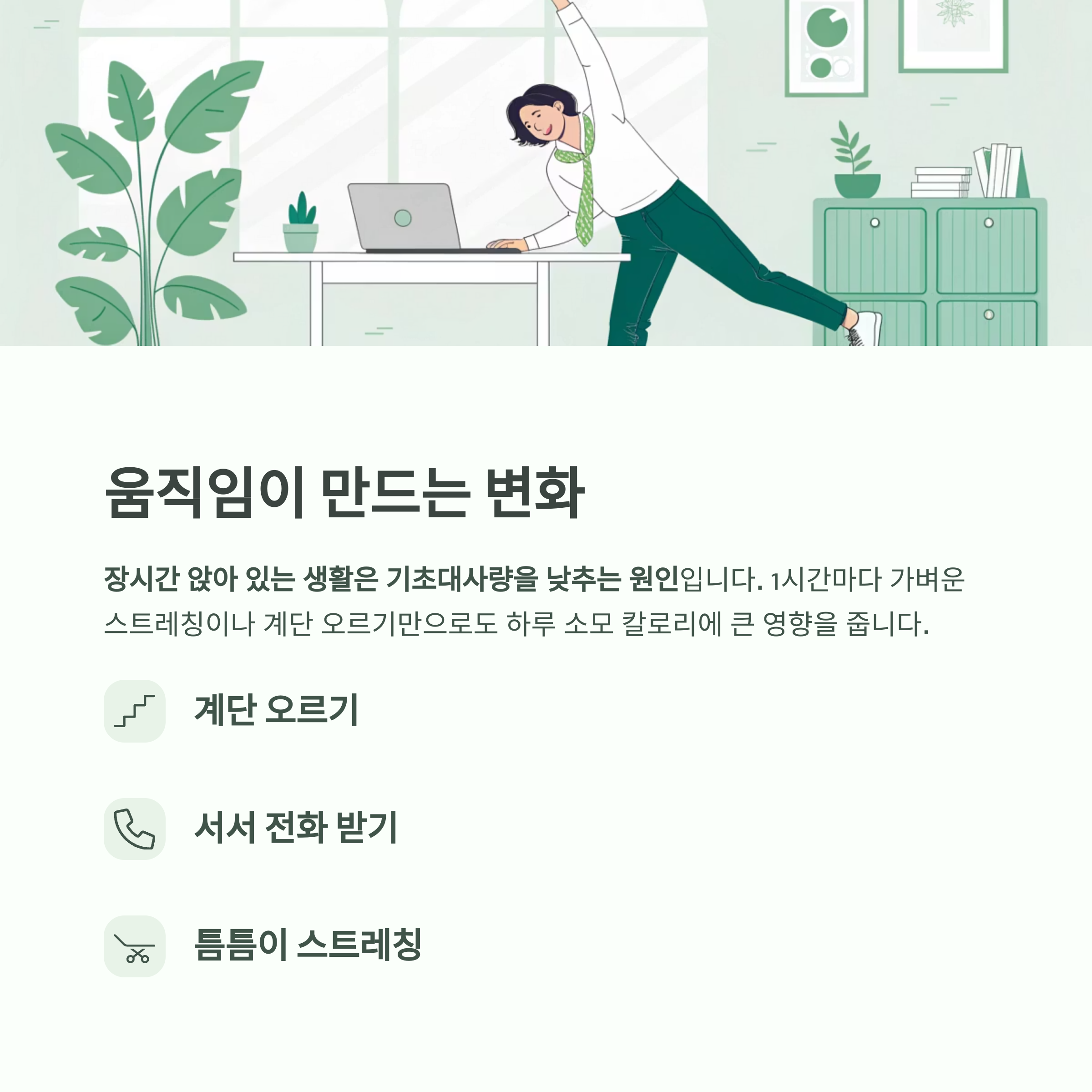 틈틈이 스트레칭과 간단한 움직임 추가하기