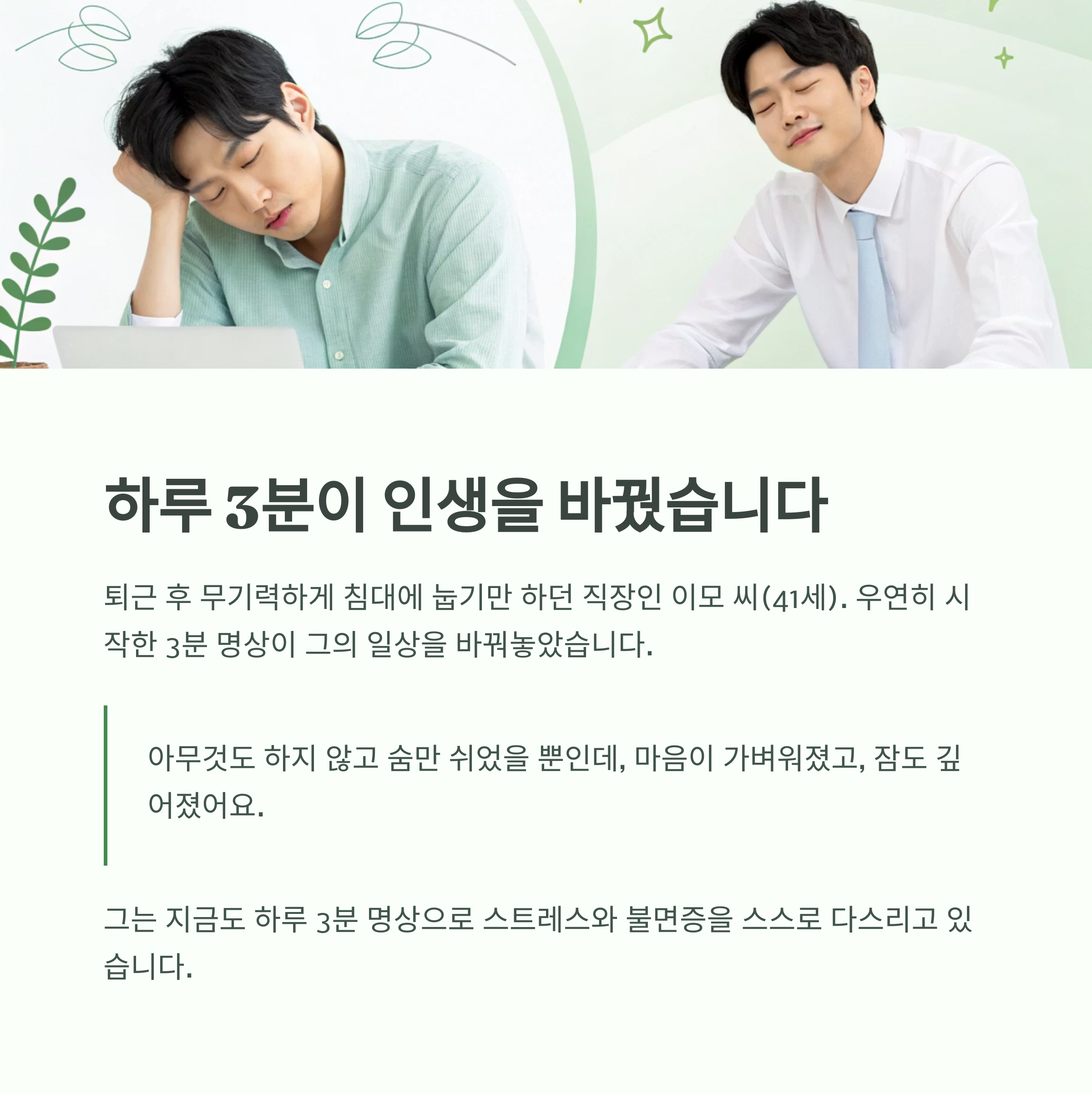 우연히 시작한 3분 명상이 그의 일상을 바꿔놓았습니다.