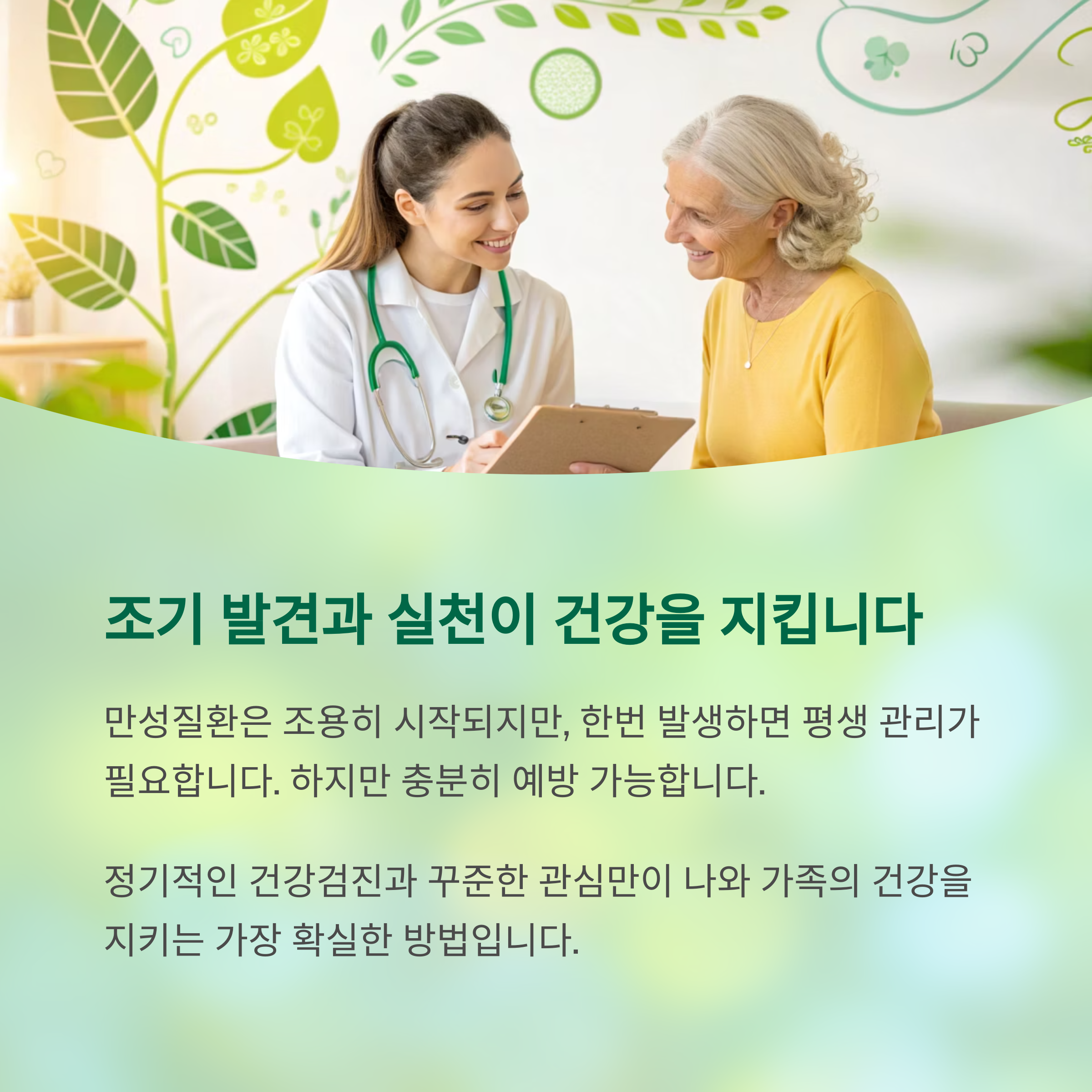 조기 진단과 꾸준한 실천으로 삶의 질을 지킬 수 있습니다.