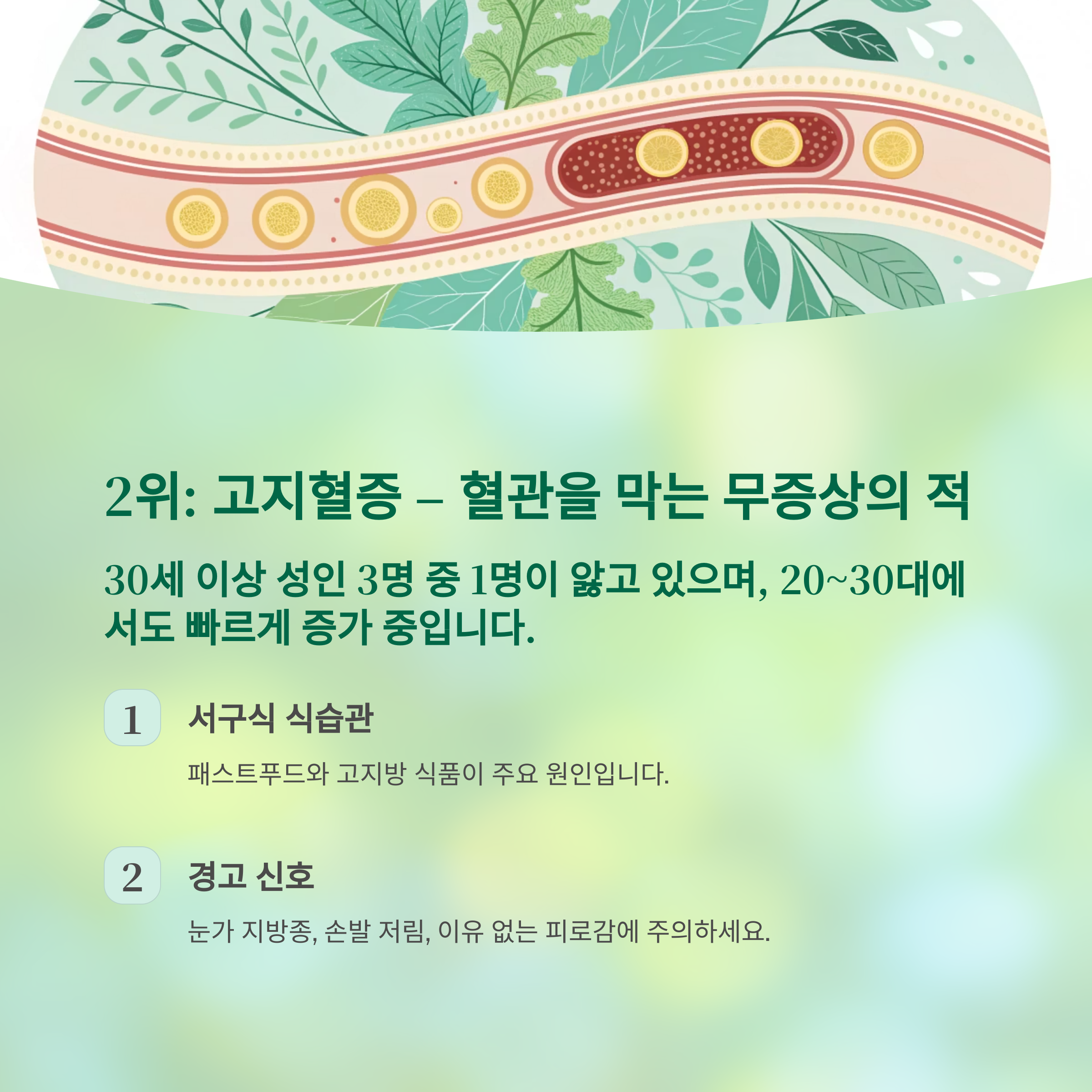 2위: 고지혈증 – 혈관을 막는 무증상의 적