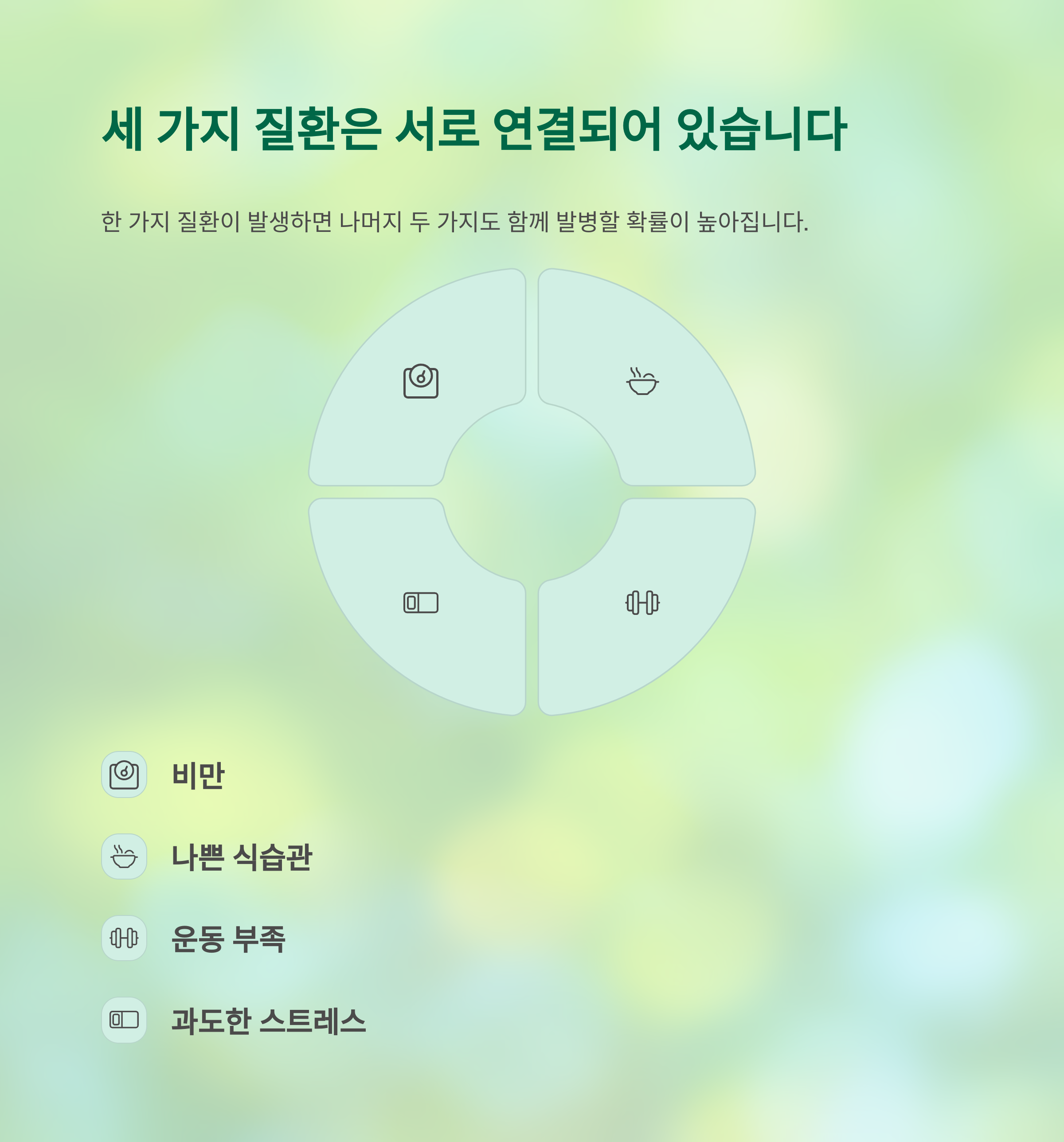 한국인의 3명 중 1명은 자각 없이 만성질환에 노출되어 있습니다.