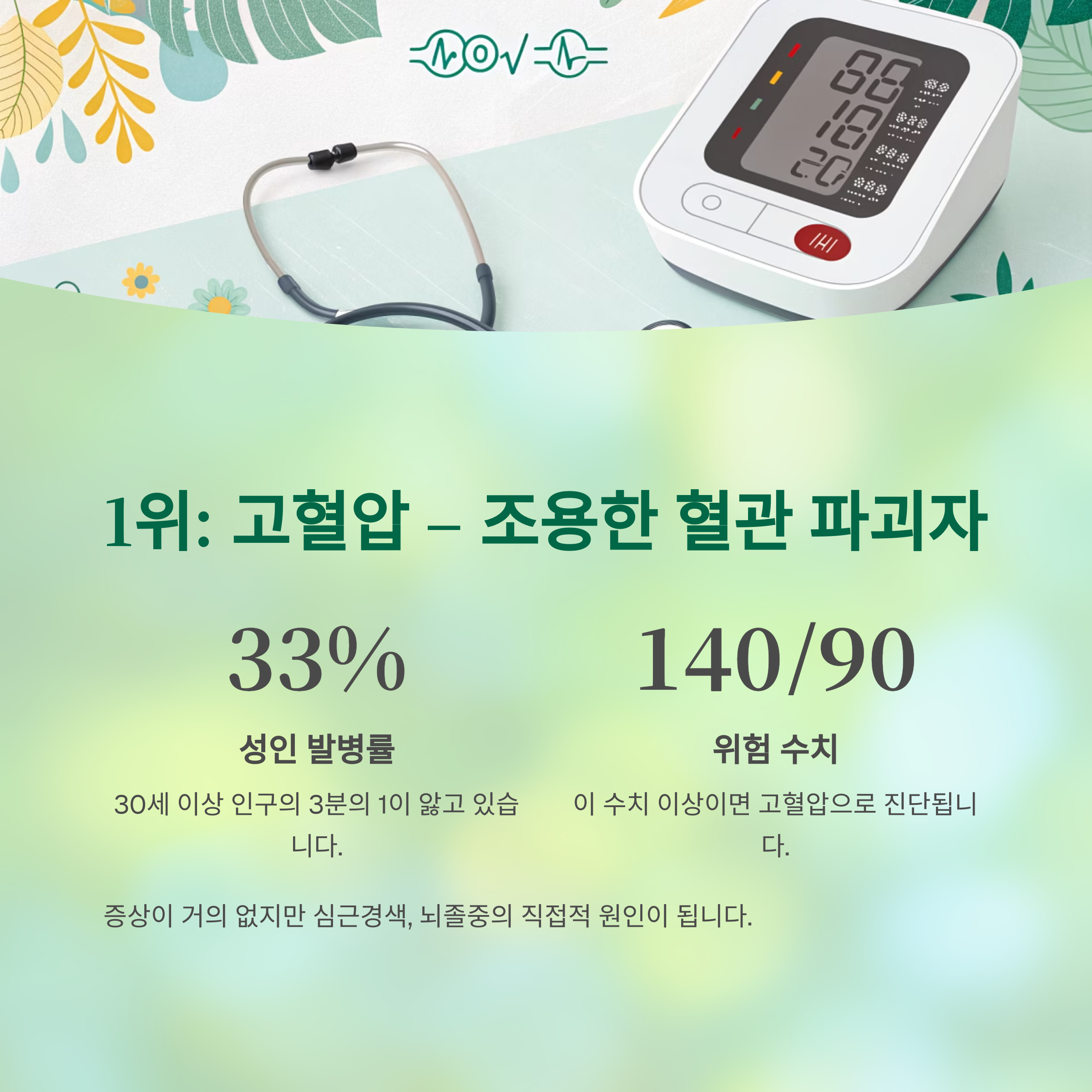 고혈압은 국내 30세 이상 인구의 33%가 앓고 있는 대표 질환입니다.