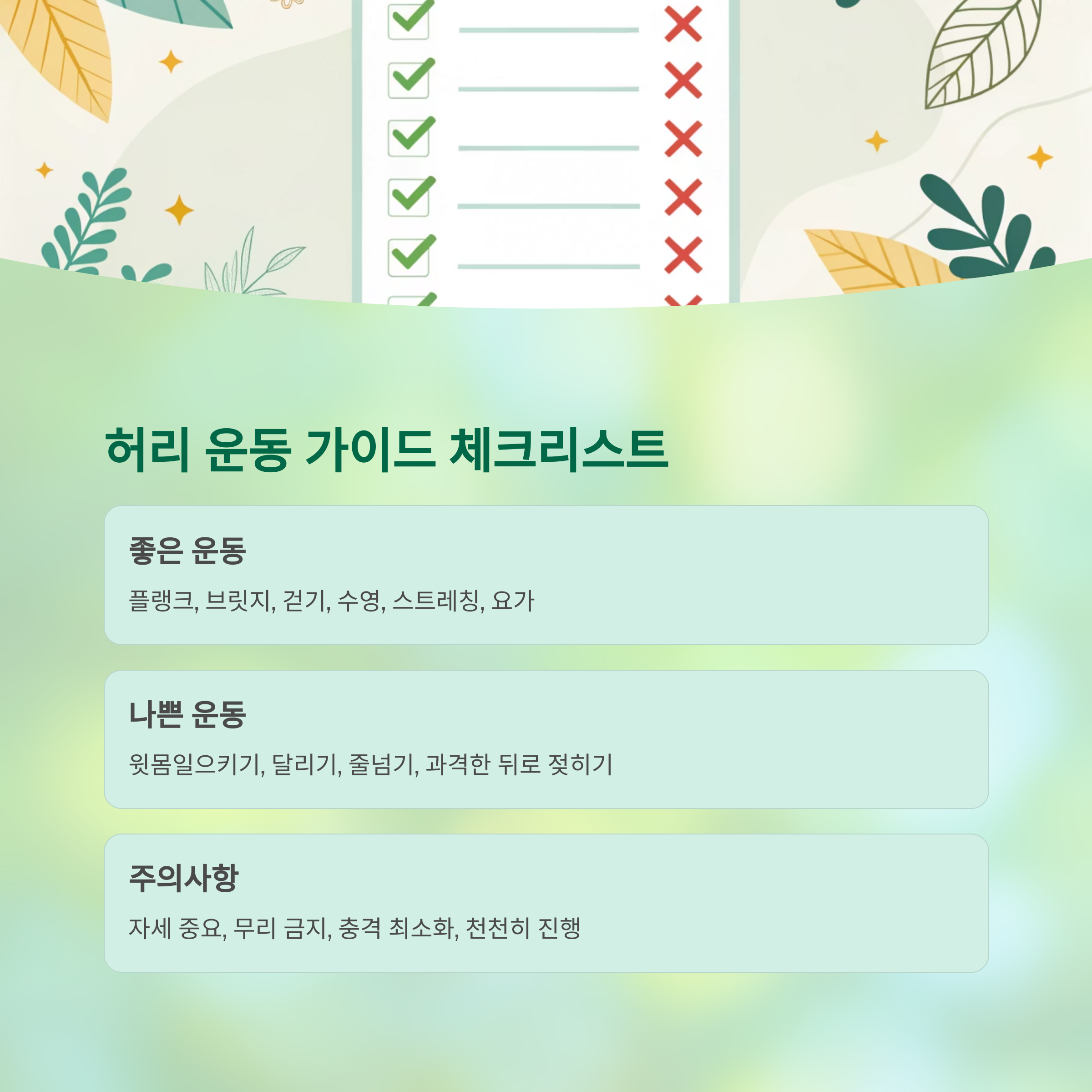 허리 통증 운동 가이드표로 쉽게 체크하기