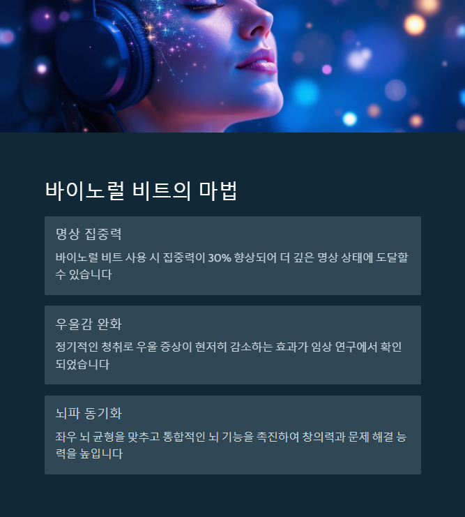 - 바이노럴 비트: 뇌파 동조, 명상 집중력 상승