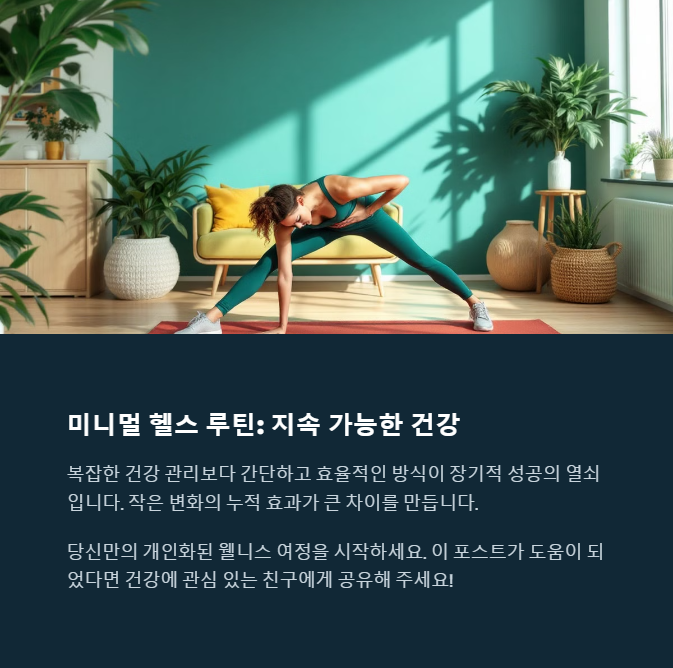 게으르다기보다는 ‘지속 가능한 건강’을 위한 접근이에요. 짧고 단순한 루틴이 오히려 더 오래갑니다.