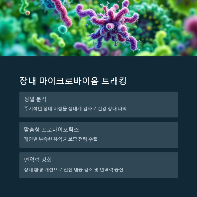 - 주기적인 장내 미생물 분석 (분변 또는 침)