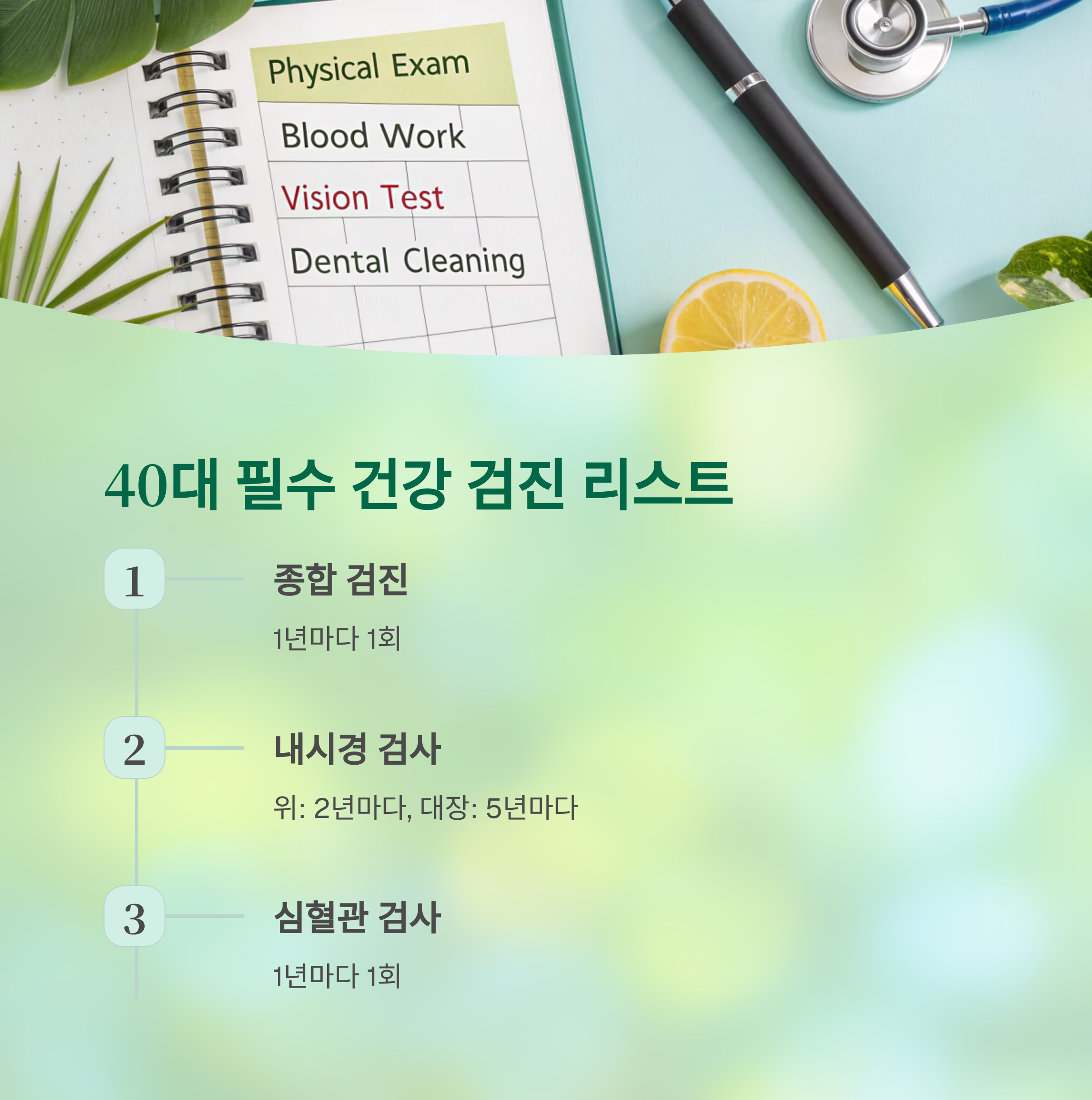 40대 이후에는 다음의 건강 검진을 정기적으로 실시하는 것이 필수적입니다