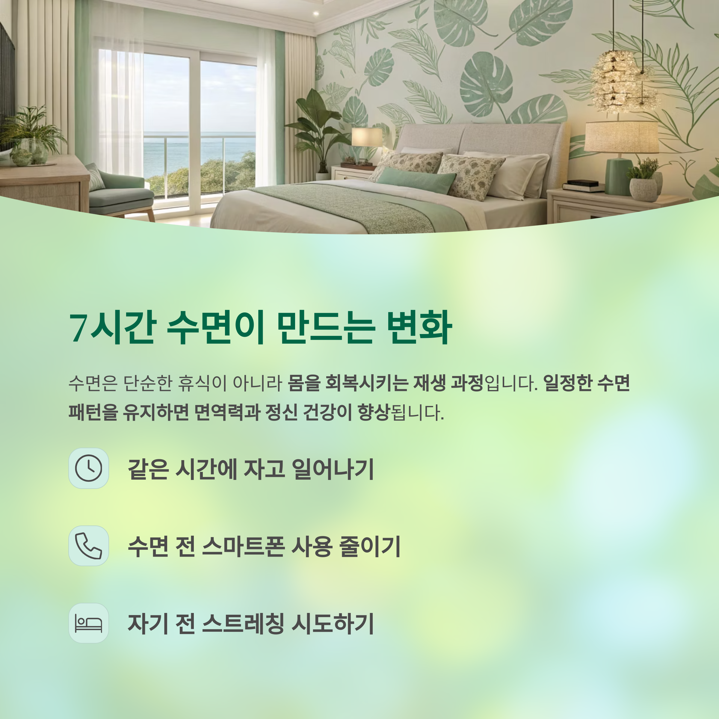 수면은 단순한 휴식이 아니라 몸을 회복시키는 재생 과정입니다.