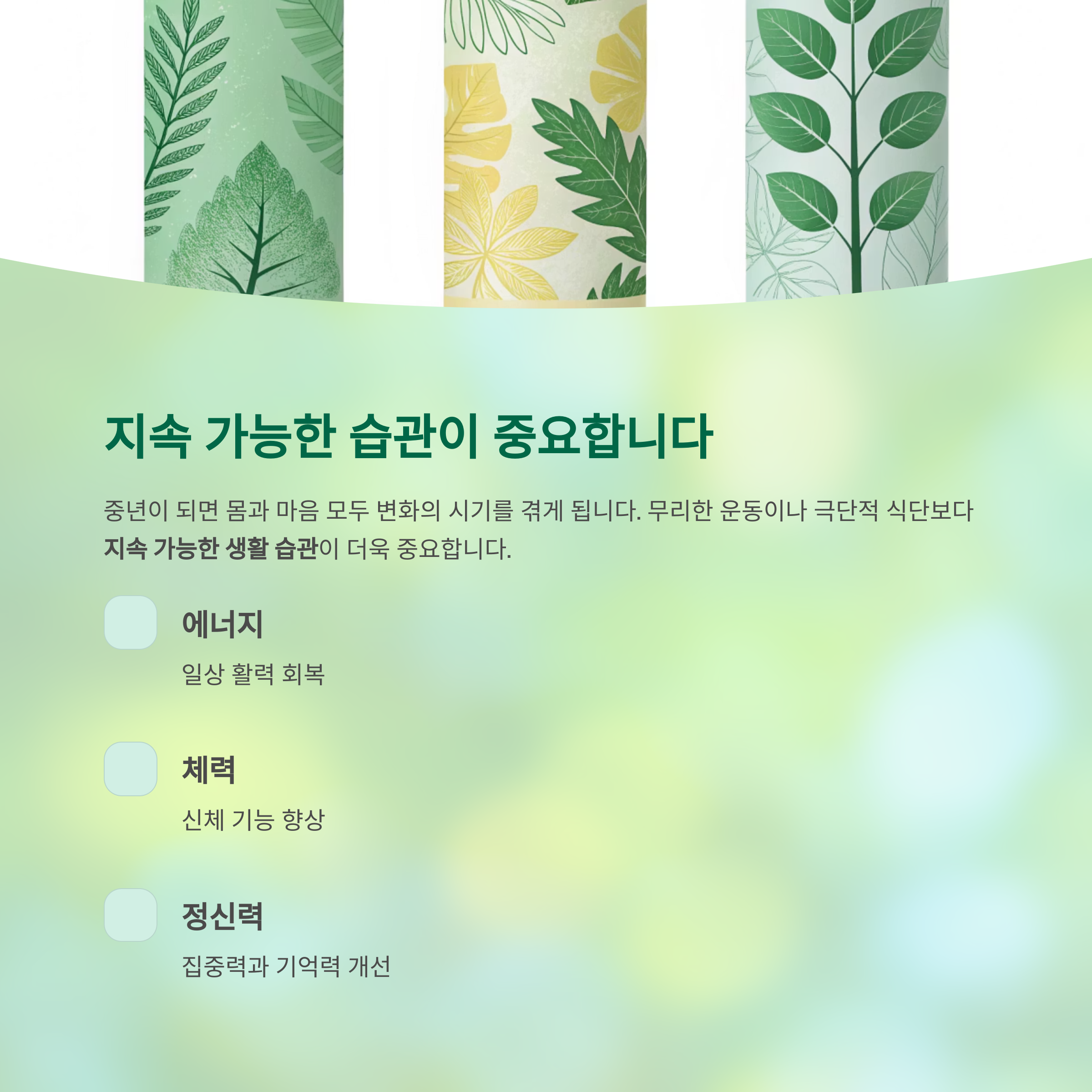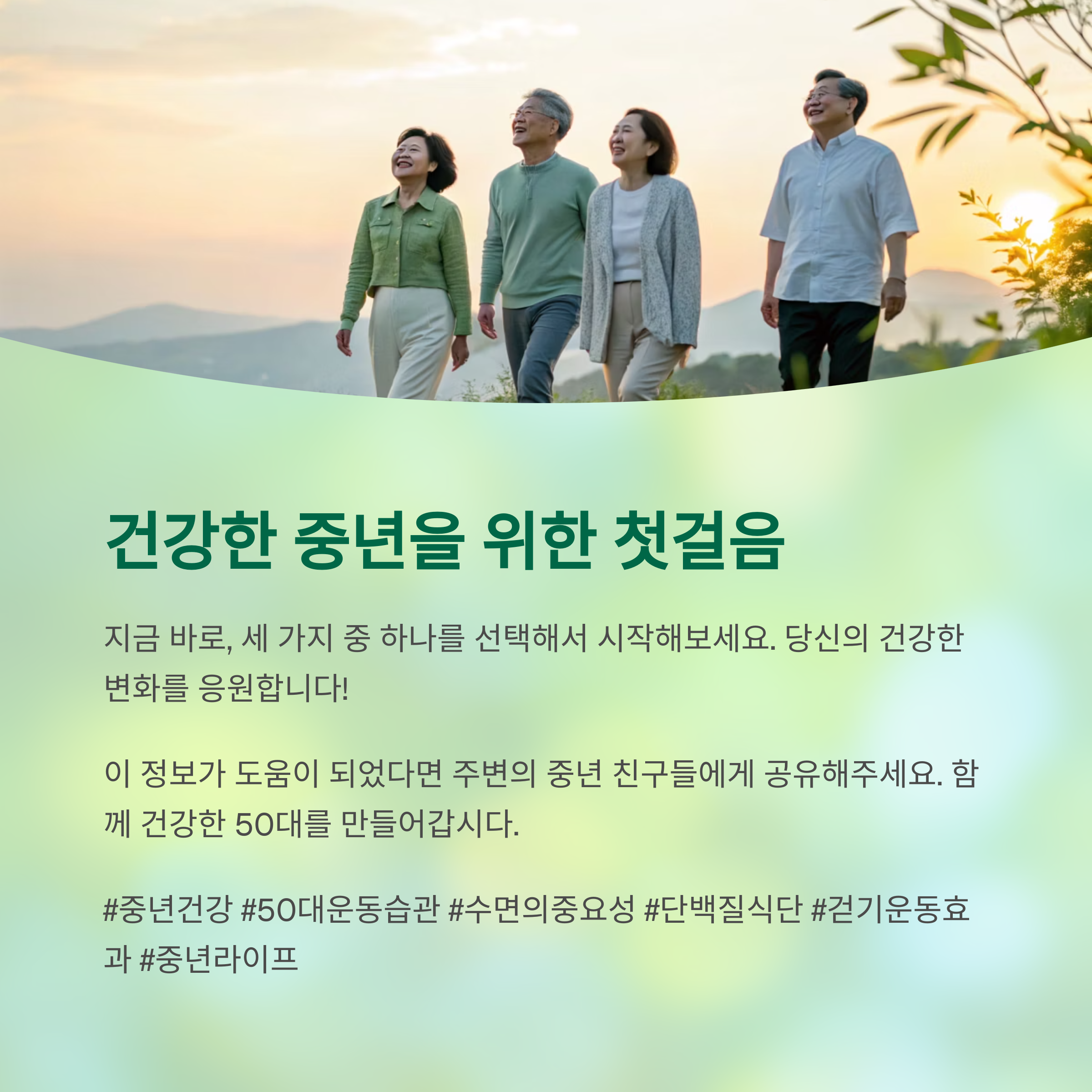 이처럼 간단한 습관 하나하나가 중년의 삶을 크게 변화시킬 수 있습니다.