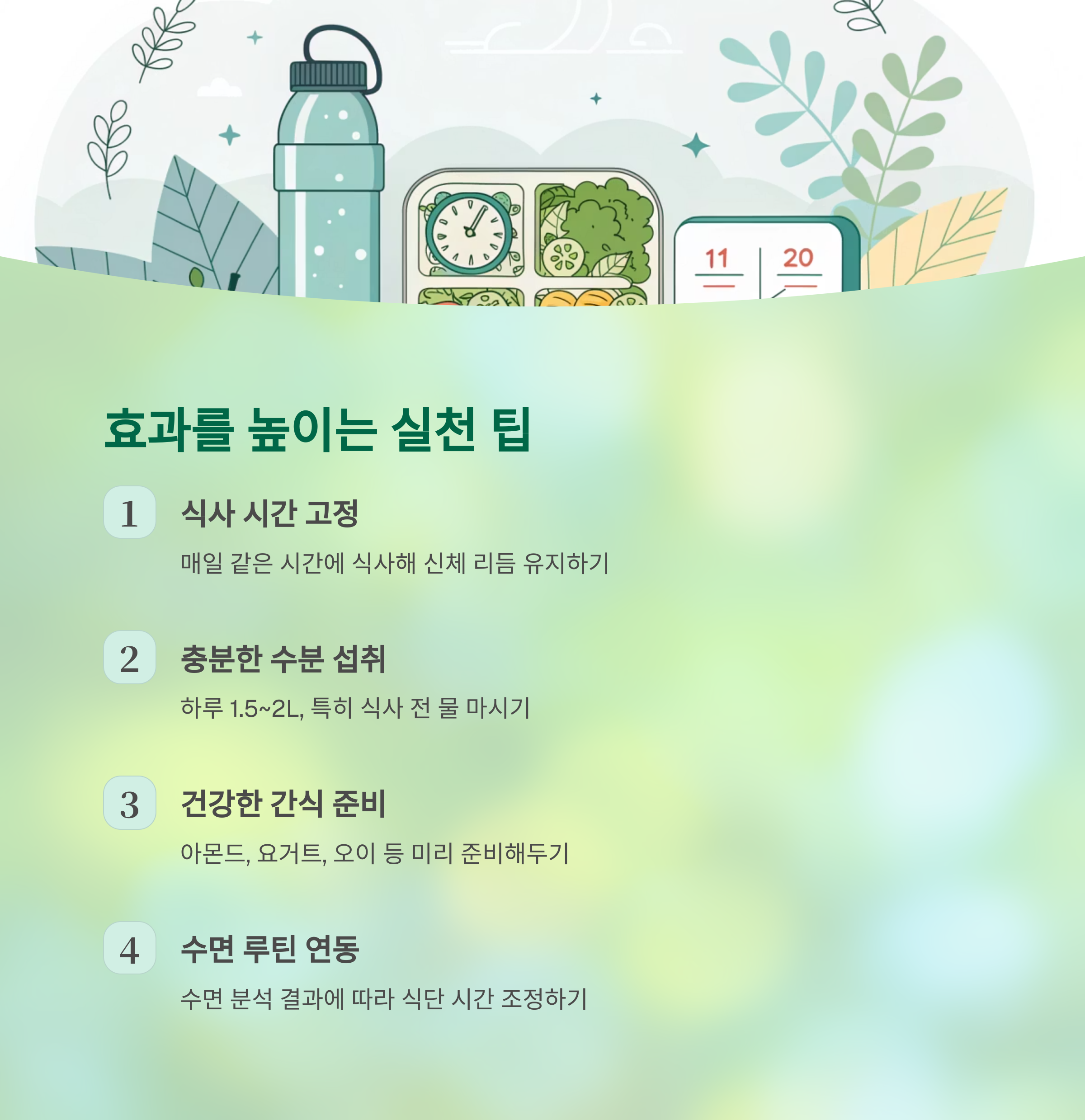 | 식사 시간 고정 | 매일 같은 시간에 식사해 리듬 유지 |