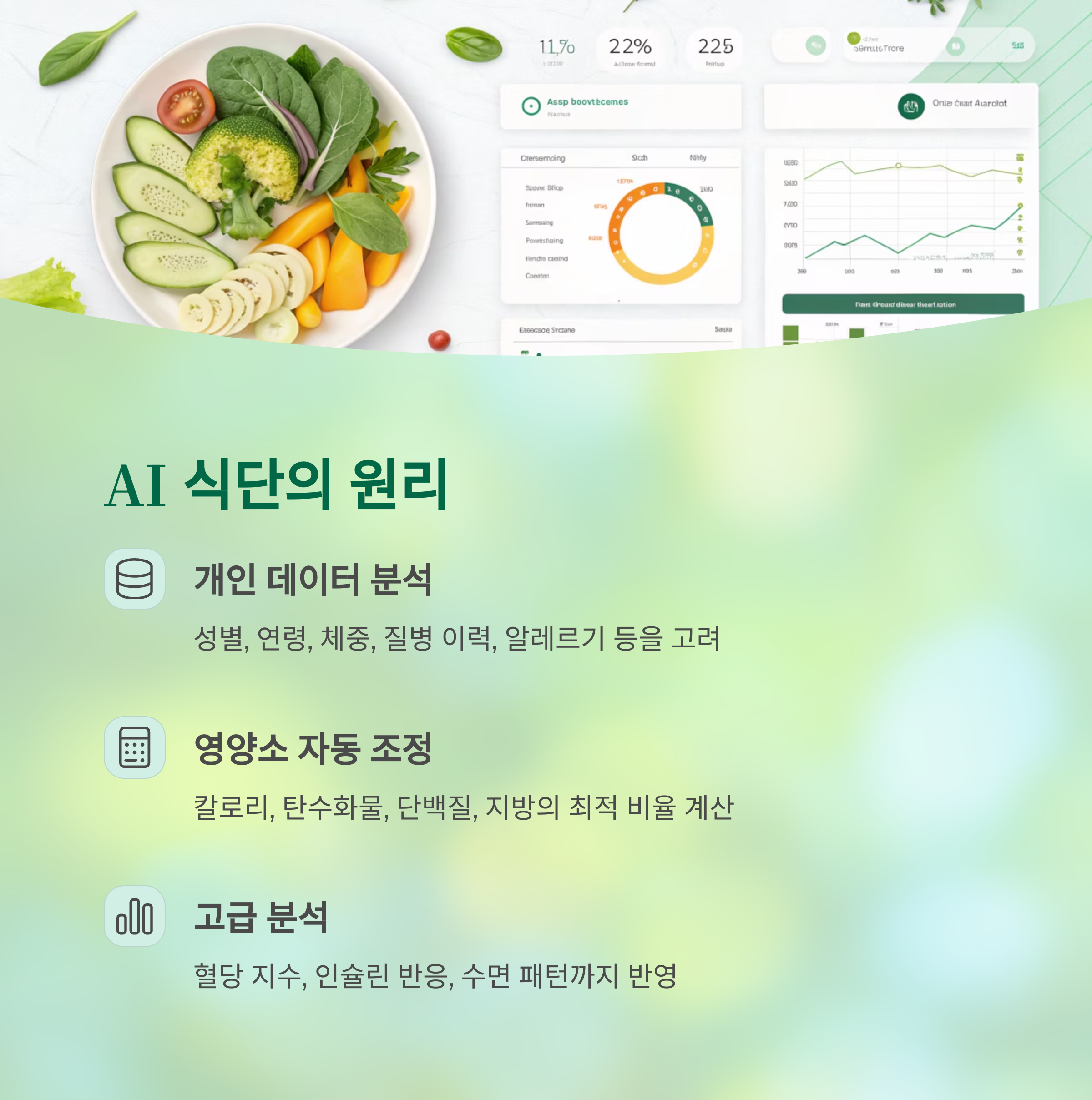 AI는 혈당의 안정성과 포만감 유지를 최우선으로 식단을 설계합니다.